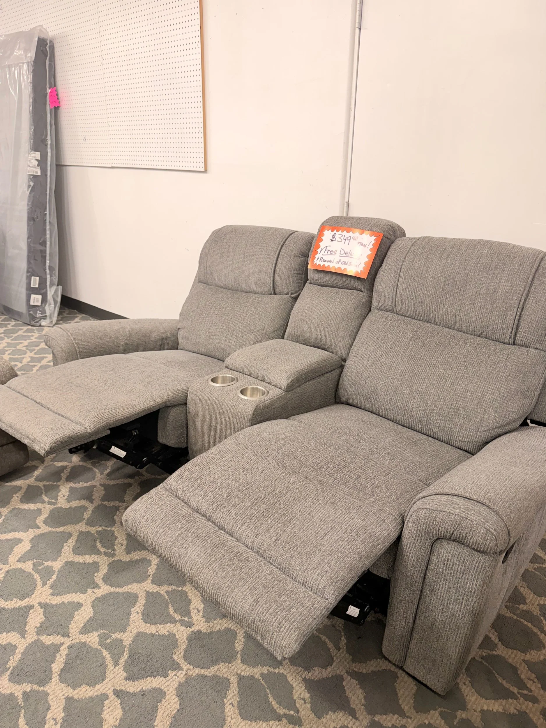 The center console includes two cup holders and storage, making it perfect for movie nights and lounging.