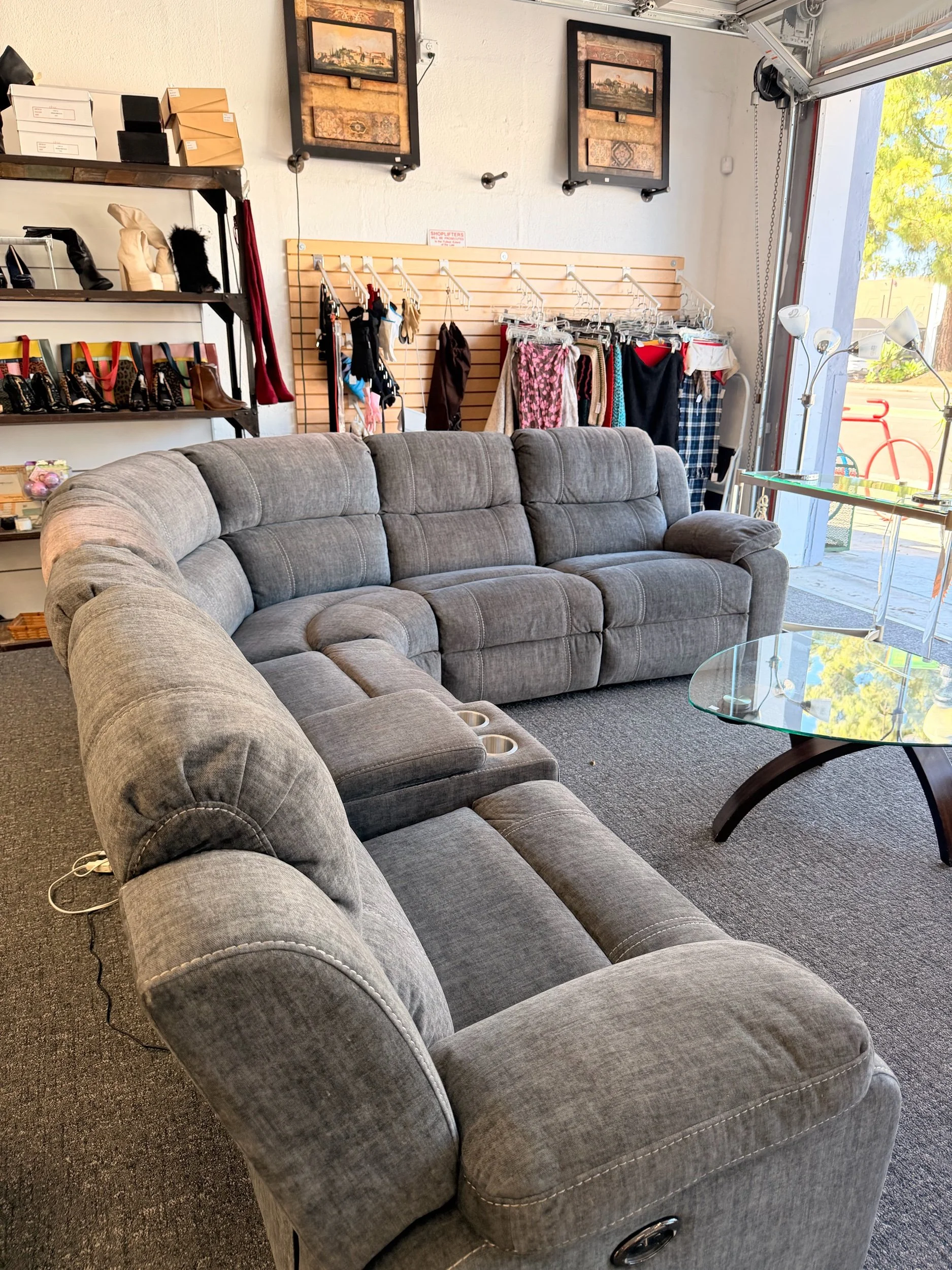 Super comfortable large sectional couch with built-in recliners and cupholders. Perfect for living rooms, movie nights, or family spaces.