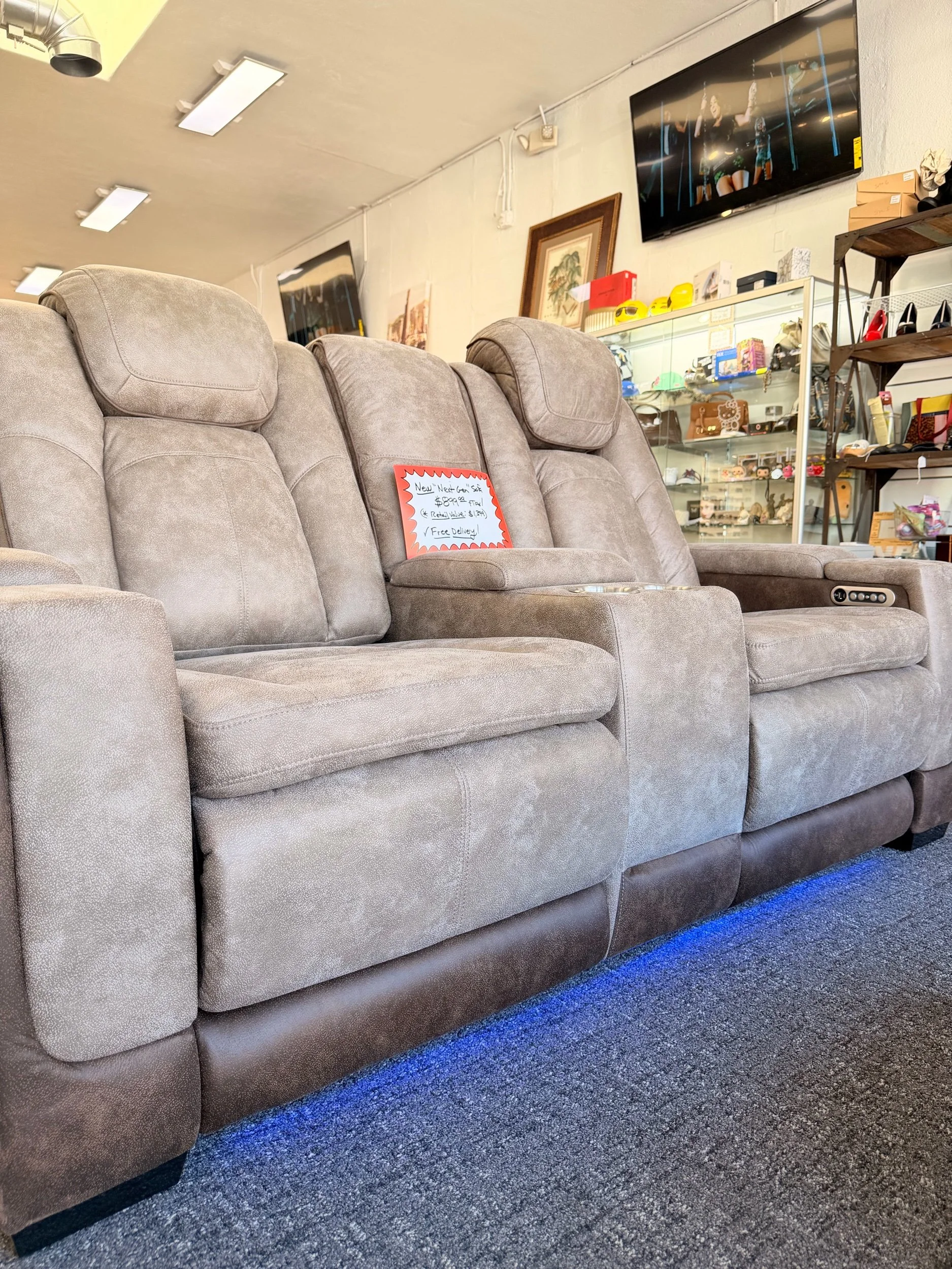Modern high-tech power reclining sofa designed for next-level comfort and a sleek, elevated look. Perfect for movie nights, relaxing, or upgrading your living space with built-in features.