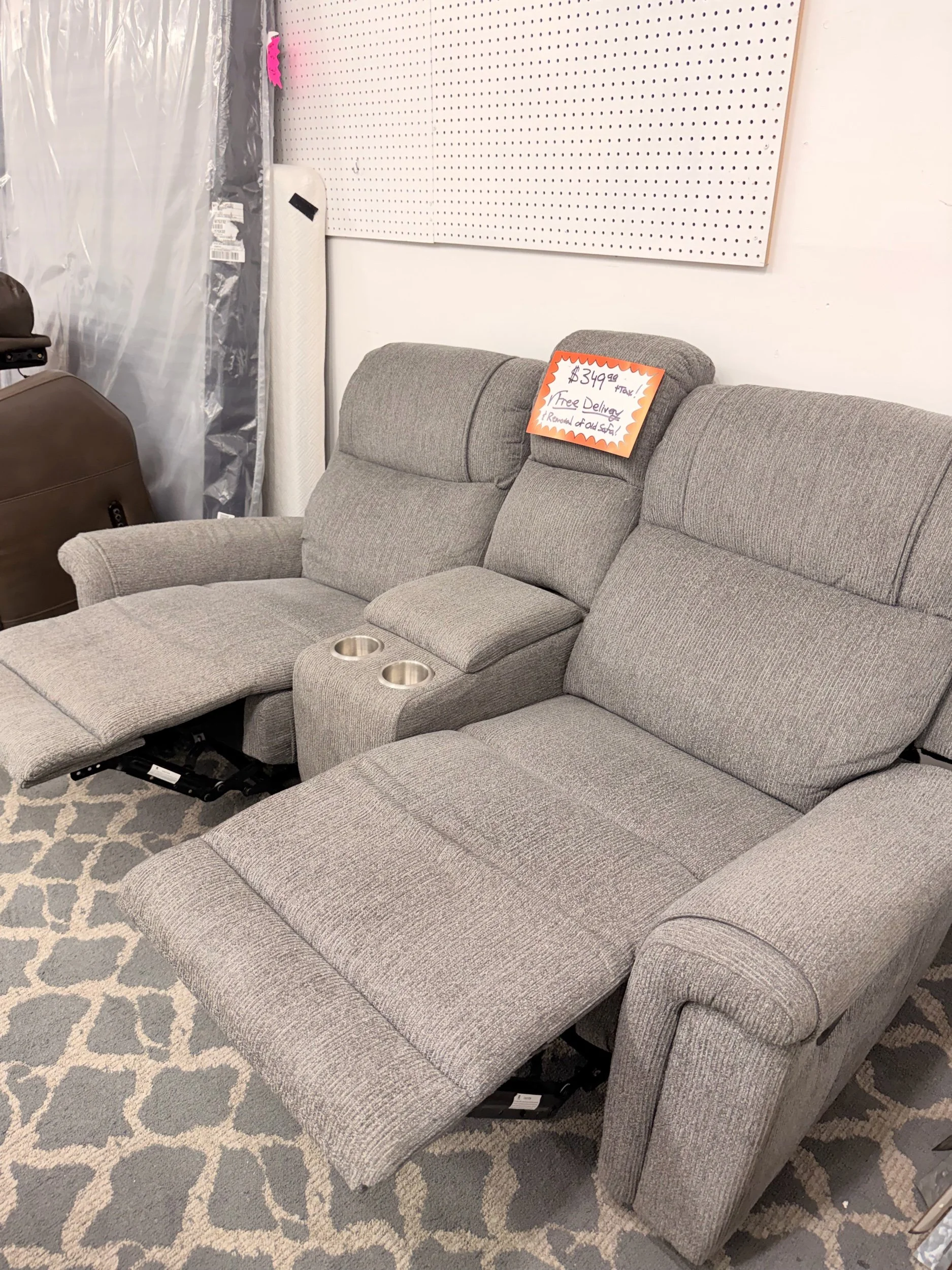 Both end seats recline smoothly, and the middle console gives you built-in storage + drink holders.
